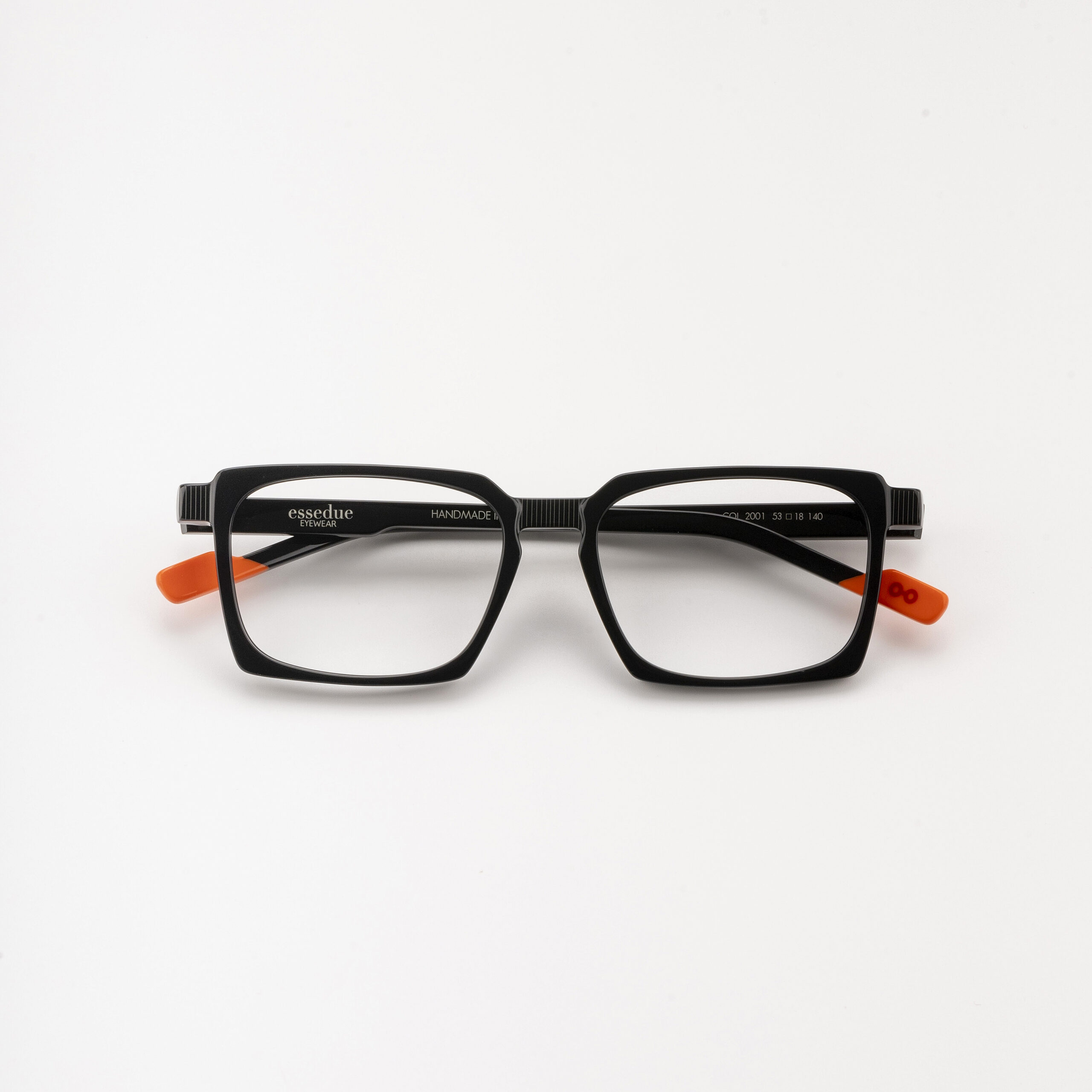 Cada gafa ESSEDUE pasa por un minucioso proceso de fabricación con más de 70 fases y 50 días de trabajo manual, lo que asegura una montura sólida, equilibrada y cómoda. El modelo Durango presenta una forma cuadrada y un acabado limpio en negro brillo, adaptándose a todo tipo de rostros y estilos.