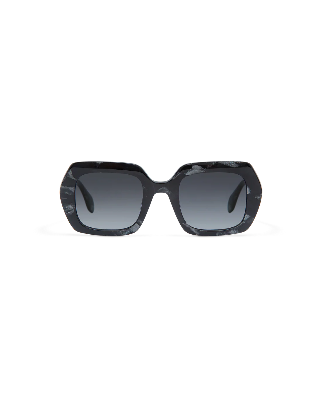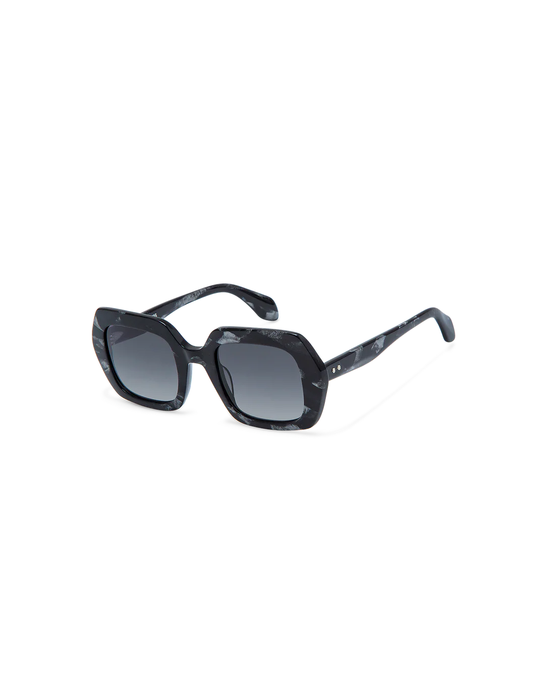 Disponible en colores cuidadosamente seleccionados en negro combinado con gris marmoleado, este modelo tiene una presencia que destaca por su personalidad y versatilidad. El acabado brillante  refuerza la riqueza visual propia de la colección SS26 ÉCLAT, inspirada en los juegos de luz de la primavera-verano.