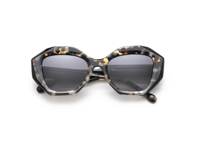 Modelo MARLENE col. 01. MARLENE es una gafa oversize de estilo sutilmente hexagonal hecha a base de acetato. Sus cortes y fresados la convierten en la gafa perfecta para la más auténtica diva.