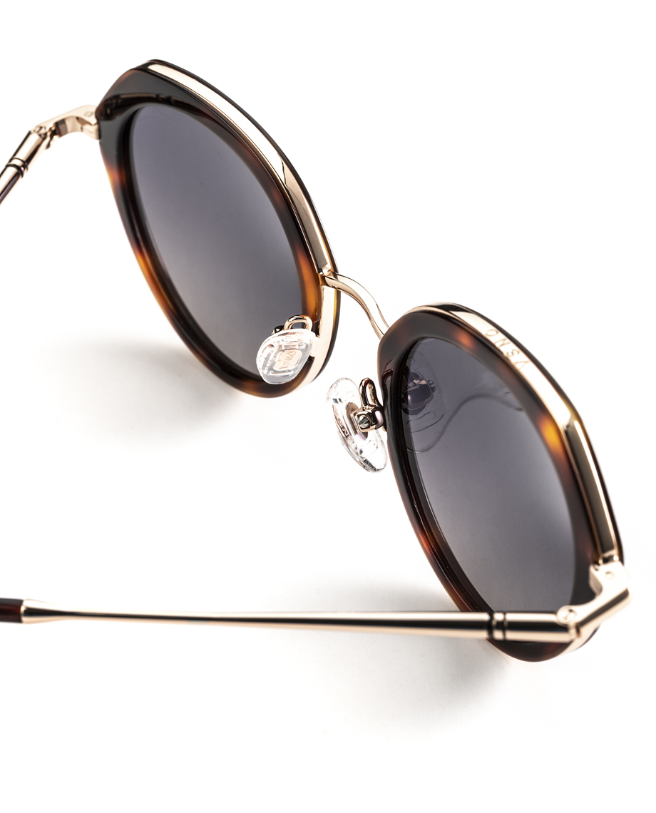 El modelo Peggy presenta una montura combinada metal-acetato, en color negro con varillas en marrón, cuidadosamente trabajada para ofrecer un equilibrio perfecto entre resistencia, ligereza y comodidad. Se caracteriza por su forma redondeada que aporta personalidad y carácter. Sus lentes en color gris degradadogarantizan una protección 100% frente a los rayos UVA y UVB, ayudando a reducir reflejos y mejorar la nitidez visual incluso en condiciones de alta luminosidad. Gracias a su diseño ligero y ergonómico, estas gafas de sol Visionario ofrecen un ajuste cómodo para un uso prolongado.