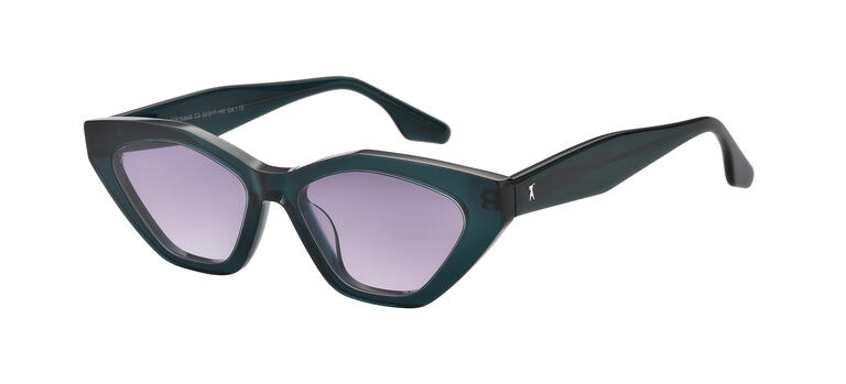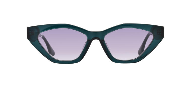 Montura de acetato en color verde con lentes degradadas en tonalidad clara.